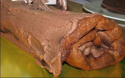 Dérouler le gâteau, couper 1/2 pouce des bord, en garnir l’intérieur et l’extérieur avec la crème fouettée
