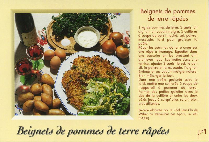 Râper les pommes de cterre crues sur une râpe à fromage. Egoutter dans une passoire afin d’enlever l’eau. Les mettre dans une terrine, ajouter 3 oeuf, les sel, le persil, le poivre et la musacde, puis l’oignon émincé. Bien mélanger le tout.