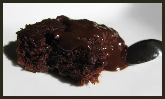 Rq : ce gâteau ne se demoule pas : on le préente dans son plat de cuisson. Ne choisissez pas un moule à fond amovible : il laisserait la sauce s’échapper du fond.