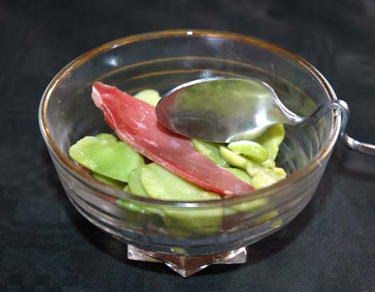 Verrines de fèves et magrets de canard