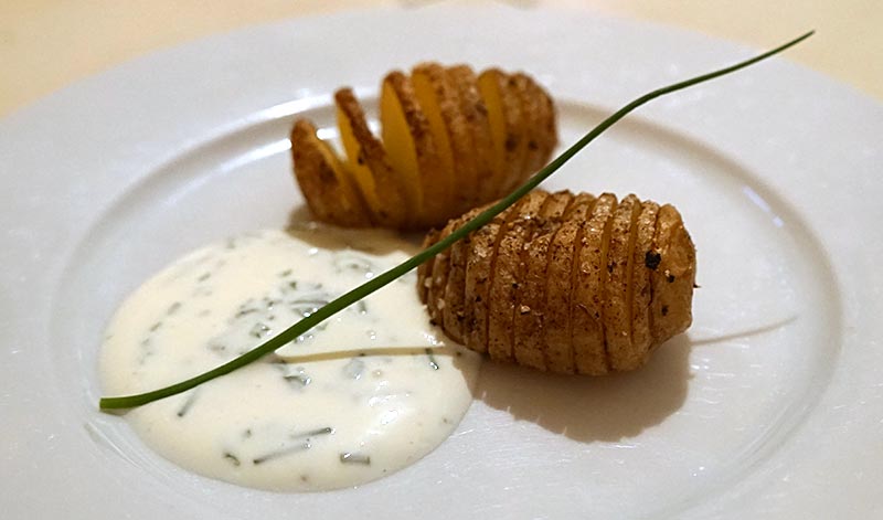 On peut accompagner ces pommes de terre d’un fromage blanc assaisonné d’échalote, de ciboulette, ou pour les plus gourmands, on peut aussi faire fondre du munster dessus.