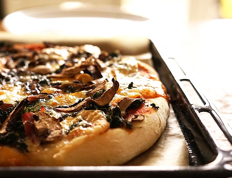 La pâte gonfle à la cuisson et devient épaisse. Si vous aimez les pâtes à pizza fines, ce n’est pas la bonne adresse. Si vous aimez les trottoirs moelleux qui croquent, c’est ici !